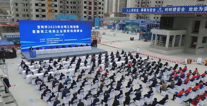 11月30日,由寶雞住房和城鄉(xiāng)建設(shè)局主辦的2023年文明工地創(chuàng)建暨建筑工地?fù)P塵治理現(xiàn)場(chǎng)觀摩會(huì)在集團(tuán)公司承建的龍豐村安置房建設(shè)項(xiàng)目現(xiàn)場(chǎng)召開(kāi)。此項(xiàng)目是全省遴選的26個(gè)文明工地示范項(xiàng)目中,寶雞地區(qū)唯一入選的觀摩項(xiàng)目。